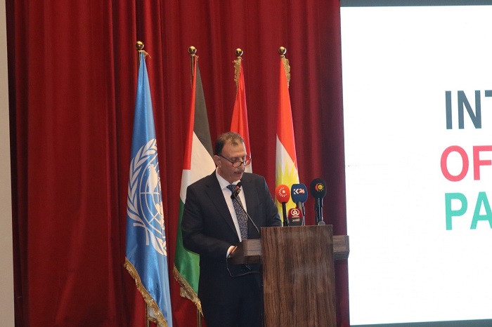 وأشار في كلمته إلى أن إقليم كوردستان يمثّل واحة للعيش السلمي بين جميع المكوّنات، ويواصل الحرص على إيصال الصوت الفلسطيني ودعمه، ويقف بقوة إلى جانب كل مبادرة تهدف إلى إحقاق السلام بوصفه الخيار الوحيد.