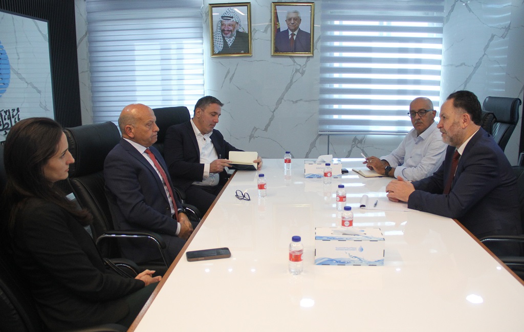 رام الله 3-12-2025 وفا- بحث رئيس سلطة المياه زياد الميمي خلال اجتماع مع رئيس مجلس إدارة صندوق الاستثمار إياد جودة، يرافقه كل من: الرئيس التنفيذي لشركة مصادر عازم بشارة، ومدير الشؤون المؤسساتية والمجتمعية رانية مرعي، بحضور مستشار سلطة المياه معاذ أبو سعدة، سبل تطوير آليات التعاون المستقبلي بين الجانبين، بما يعزّز دور القطاع الخاص في دعم المشاريع الاستراتيجية لقطاع المياه والصرف الصحي وإعادة الاستخدام.