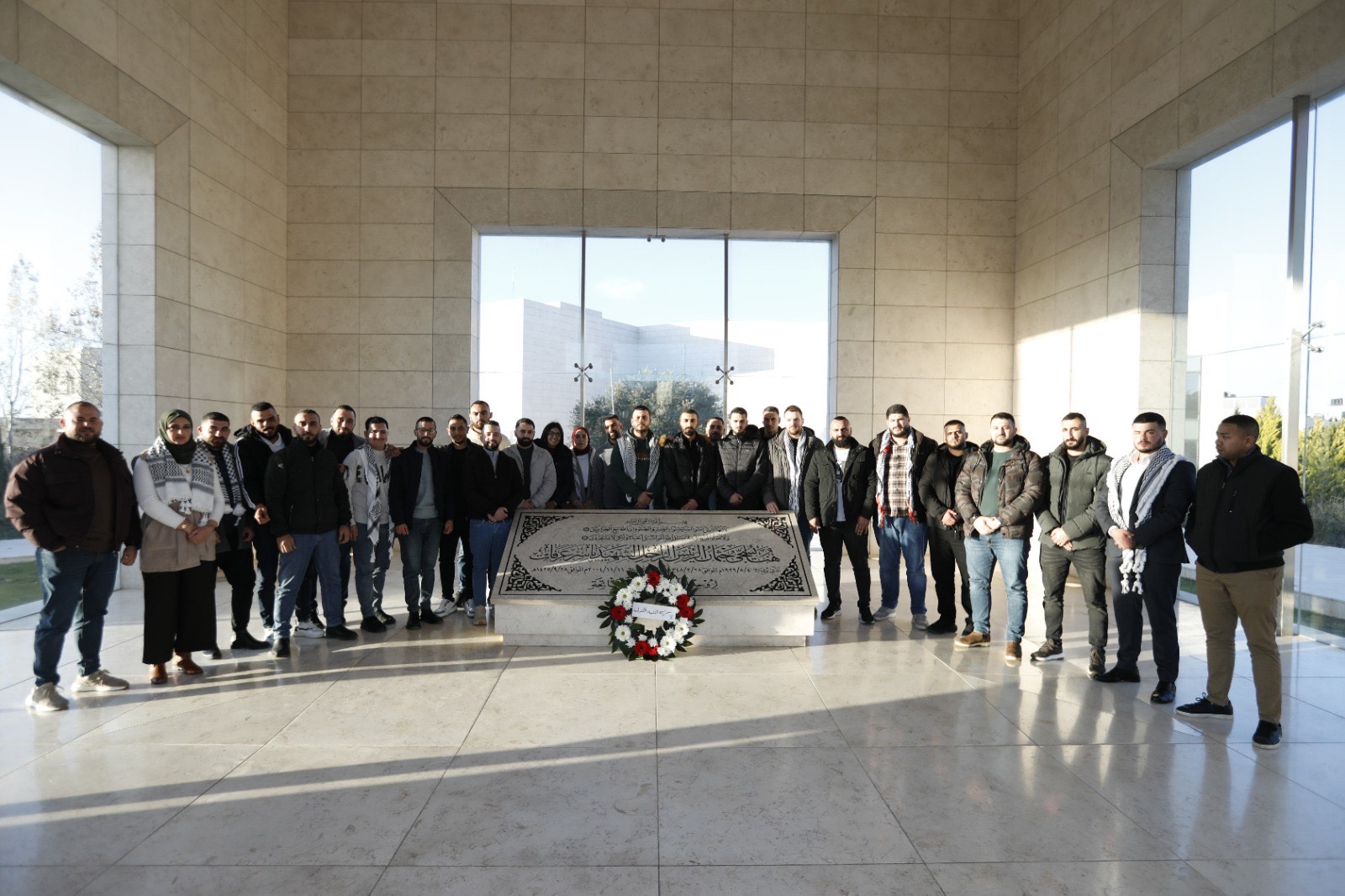 وجرى ذلك بمشاركة وفد من أعضاء سكرتاريا الشبيبة الفتحاوية، ورؤساء فروع الشبيبة في الأقاليم، الذين قرؤوا الفاتحة على روحه، مجددين العهد على مواصلة المسيرة الوطنية.