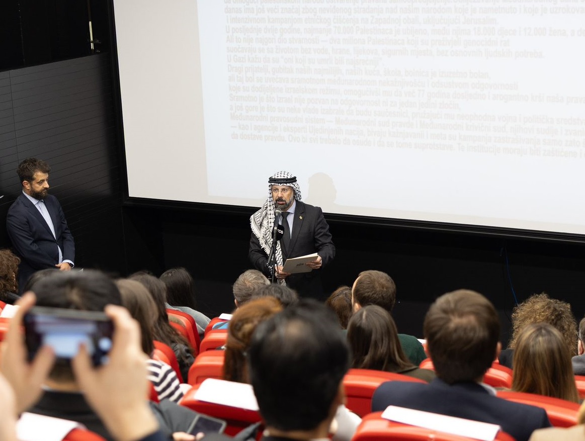 وفي كلمتها، أكدت فويوفيتش أن "من الصعب التحدث والكتابة عن مُثُل التضامن الإنساني العالمي في وقت يعاني فيه الفلسطينيون".