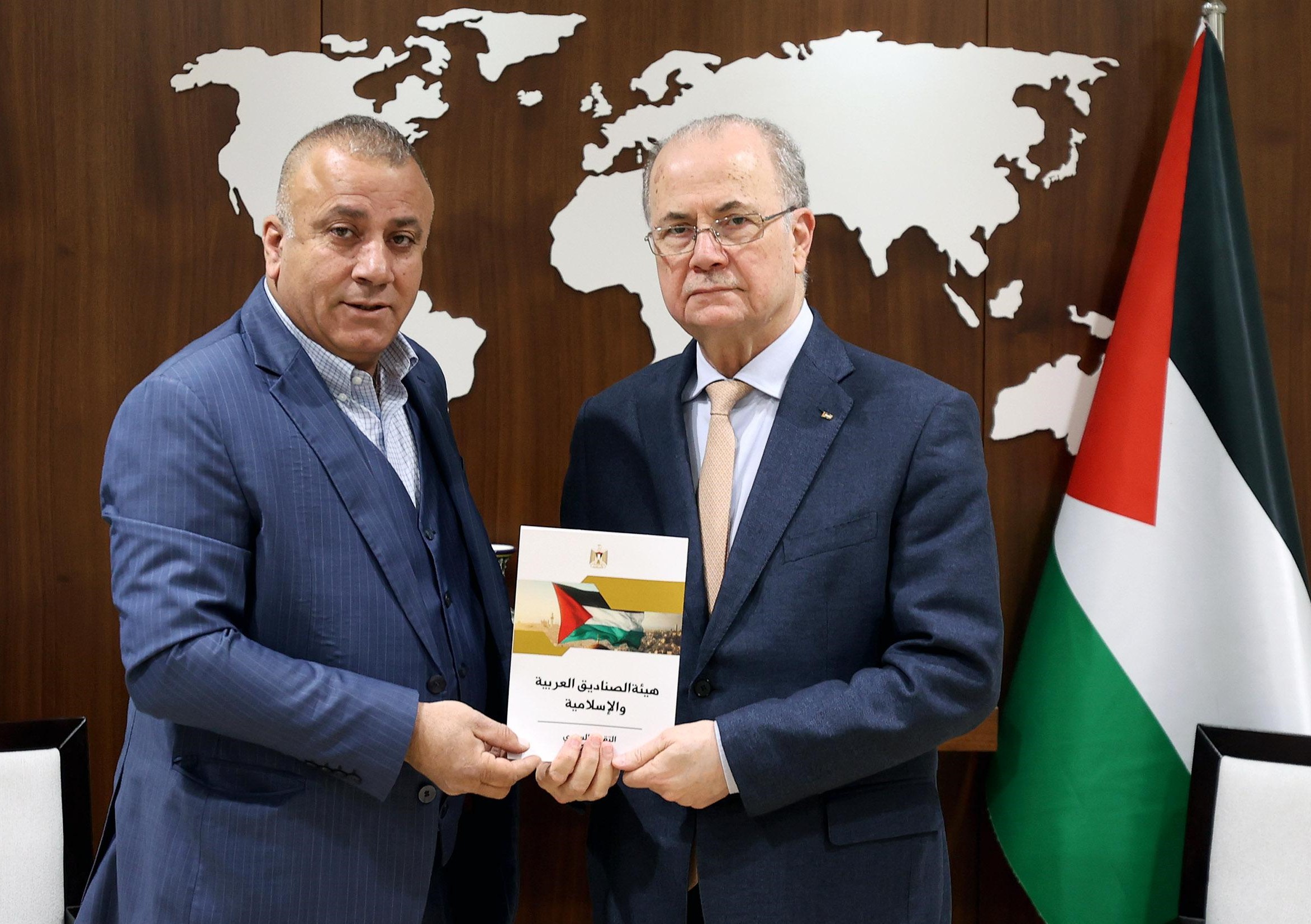 رام الله 1-2-2025 وفا- تسلم رئيس الوزراء محمد مصطفى، اليوم السبت، في مكتبه برام الله، من المستشار لشؤون الصناديق العربية والإسلامية ناصر قطامي، التقرير السنوي للمشاريع والتدخلات الطارئة التي نفذتها الصناديق العربية والإسلامية والمؤسسات الشريكة، بالتعاون مع الحكومة الفلسطينية خلال العام 2024 في قطاع غزة والضفة الغربية بما فيها القدس، ومخيمات اللجوء في لبنان.