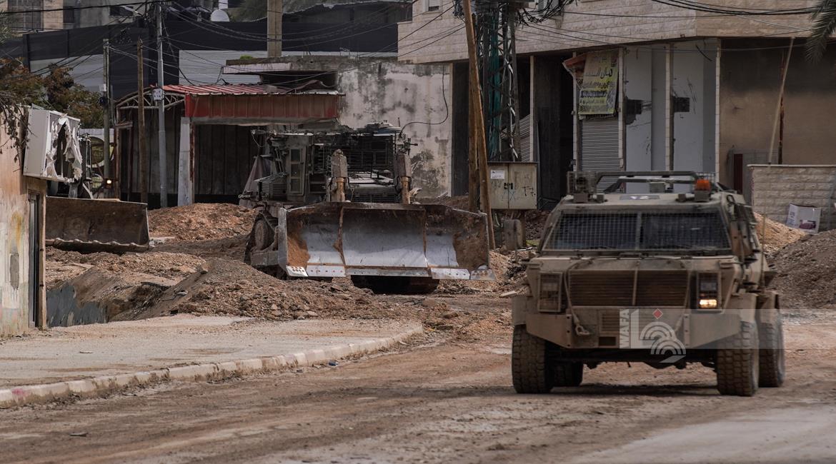 كما تواصل جرافات الاحتلال تجريف وتدمير البنية التحتية والممتلكات في مختلف حارات المخيم بدءا من جبل النصر والصالحين والمنشية والمسلخ وصولا إلى الحارات الداخلية، إضافة إلى تجريف شارع نابلس على طول امتداد مداخل المخيم وتدميره بشكل كامل، كما نسفت ثلاثة منازل.