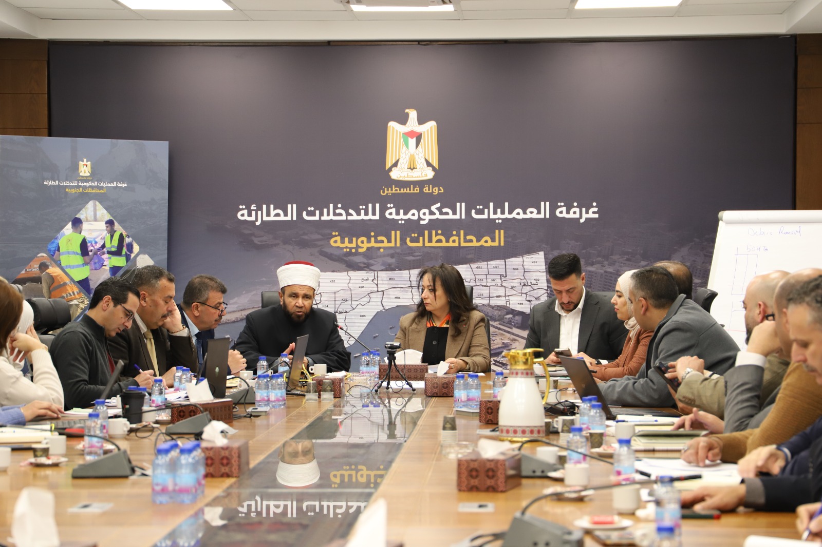 رام الله 16-2-2025 وفا- شارك وزير الأوقاف والشؤون الدينية محمد مصطفى نجم، اليوم الأحد، في اجتماع غرفة العمليات الحكومية للتدخلات الطارئة في المحافظات الجنوبية.