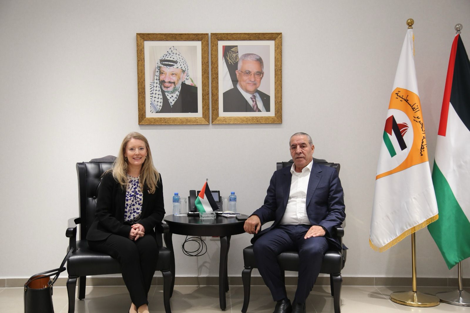 رام الله 17-2-2025 وفا- بحث أمين سر اللجنة التنفيذية لمنظمة التحرير الفلسطينية حسين الشيخ، في مكتبه بمدينة رام الله، مع القنصل البريطاني العام هيلين وينترتون، الجهود الإقليمية والدولية لتثبيت اتفاق وقف إطلاق النار في قطاع غزة وضمان استمراره.
