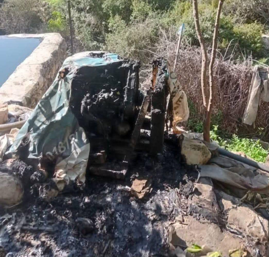 مستعمرون يدمرون ويحرقون ممتلكات زراعية ومضخات مياه في بيتللو شمال غرب رام الله