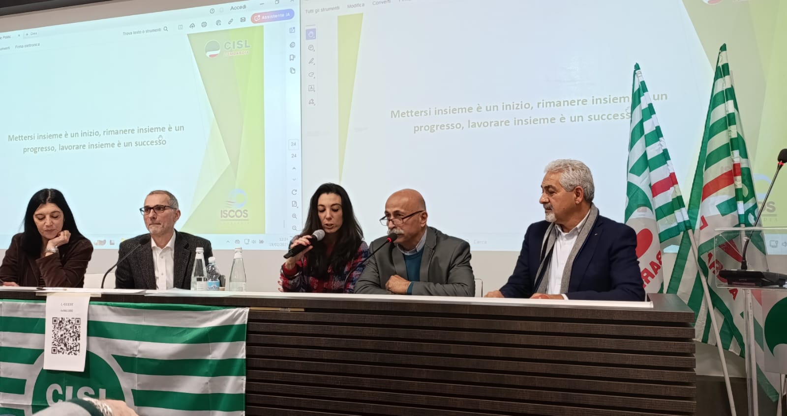 وحضر اللقاء، رئيسة المعهد النقابي الإيطالي للتعاون والتطوير ميريام فراري.