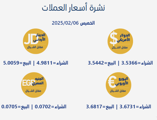 رام الله 6-2-2025 وفا- جاءت أسعار صرف العملات مقابل الشيقل الإسرائيلي، اليوم الخميس، بحسب سلطة النقد الفلسطينية، على النحو التالي: