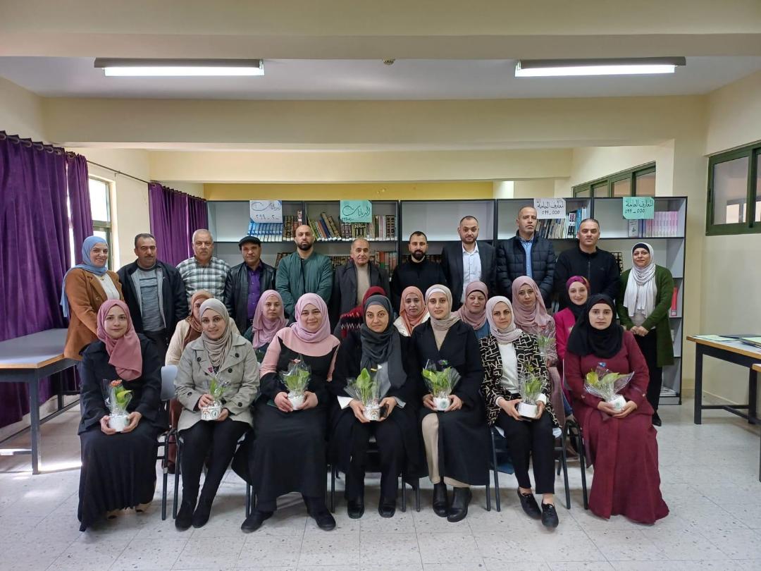 رام الله 10-3-2025 وفا- كرمت منظمة التحرير الفلسطينية، بالتعاون مع اتحاد المعلمين ومديرية التربية والتعليم في محافظة رام الله والبيرة، اليوم الاثنين، معلمات مدرسة بنات برقا الثانوية، شرق رام الله.