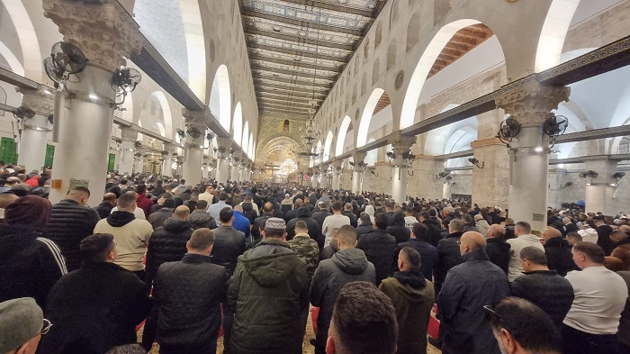 القدس 10-3-2025 وفا- أدى 60 ألف مصل صلاتي العشاء والتراويح في اليوم العاشر من شهر رمضان الفضيل، في رحاب المسجد الأقصى المبارك، في ظل الإجراءات العسكرية المشددة التي تفرضها سلطات الاحتلال الإسرائيلي على الوصول إلى المسجد.