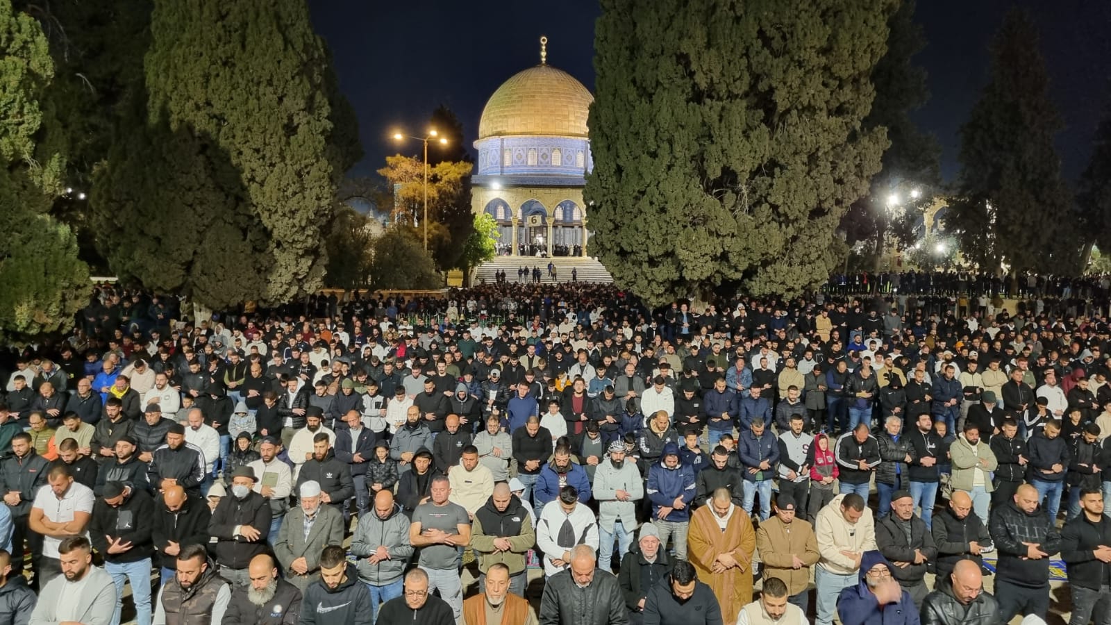 وقالت دائرة الأوقاف الإسلامية بالقدس المحتلة إن 65 ألف مصل أدوا صلاتي العشاء والتراويح في رحاب المسجد الأقصى المبارك، رغم تشديدات الاحتلال وحواجزه المنتشرة داخل المدينة المحتلة.