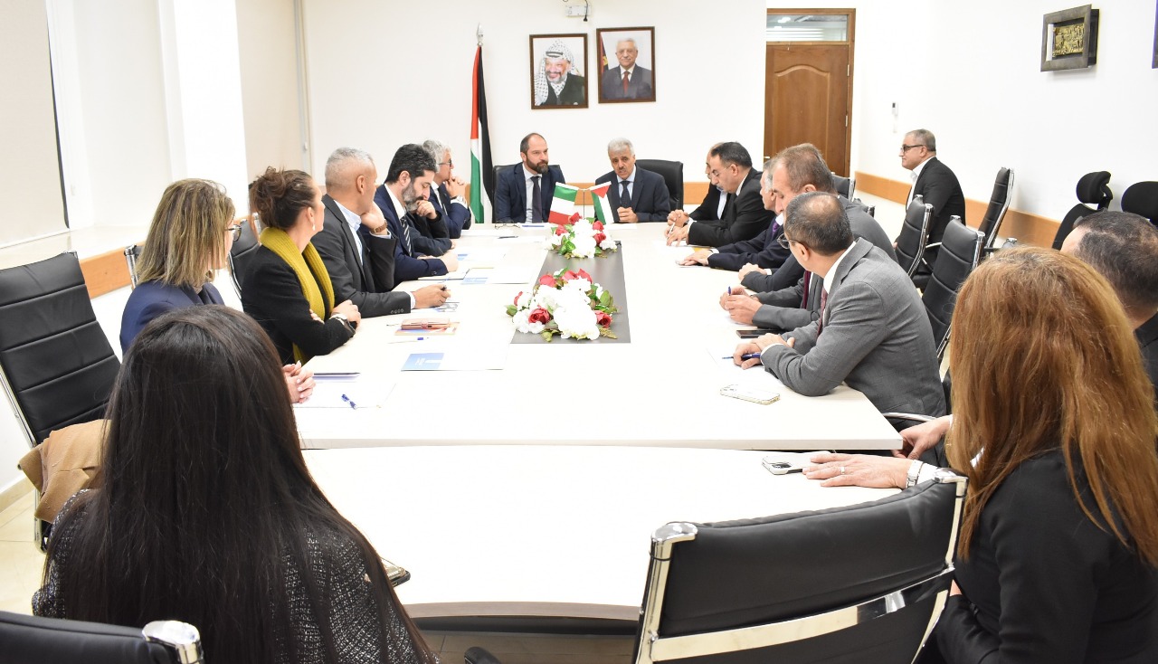 وناقش الاجتماع التطورات الرئيسة على صعيد مشروع "التدخل متعدد التخصصات لدعم التعليم العالي في فلسطين" بهدف تبادل الخبرات، وكذلك النظر إلى مُستقبل المشروع، خاصة فيما يتعلق بتبادل المهارات والمعرفة بين الجامعات الإيطالية والفلسطينية.