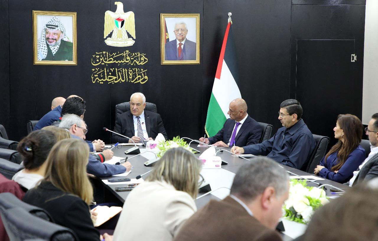 رام الله 13-3-2025 وفا- بحث وزير الداخلية اللواء زياد هب الريح، مع ممثلي عدد من المؤسسات الدولية التي تقوم بإدخال المساعدات إلى قطاع غزة، التحديات والصعوبات التي تواجههم في تنفيذ مهامهم وبرامجهم الإغاثية في قطاع غزة، وسبل مواجهتها.