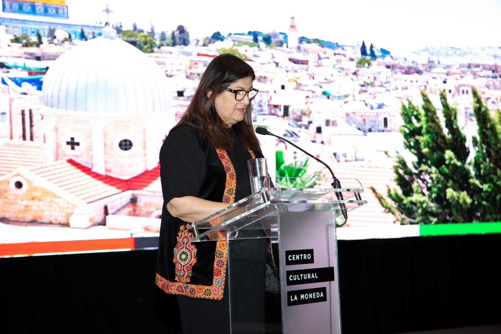 وجرى إقامة الحفل بحضور وزيرة الدولة لشؤون وزارة الخارجية فارسين شاهين، ووزير الخارجية التشيلي البيرتو فان كلافين، وسفيرة دولة فلسطين لدى تشيلي فيرا بابون، والمديرة التنفيذية لمؤسسة تطوير بيت لحم، رئيسة اللجنة الرئاسية لترميم مغارة بيت لحم خلود دعيبس، والقنصل الفخري لتشيلي لدى دولة فلسطين جورج الأعمى، ومشاركة أعضاء السلك الدبلوماسي، ورجال الدين وشخصيات سياسية وثقافية تشيلية وعربية وأوروبية، وبحضور الجالية الفلسطينية المقيمة في تشيلي.