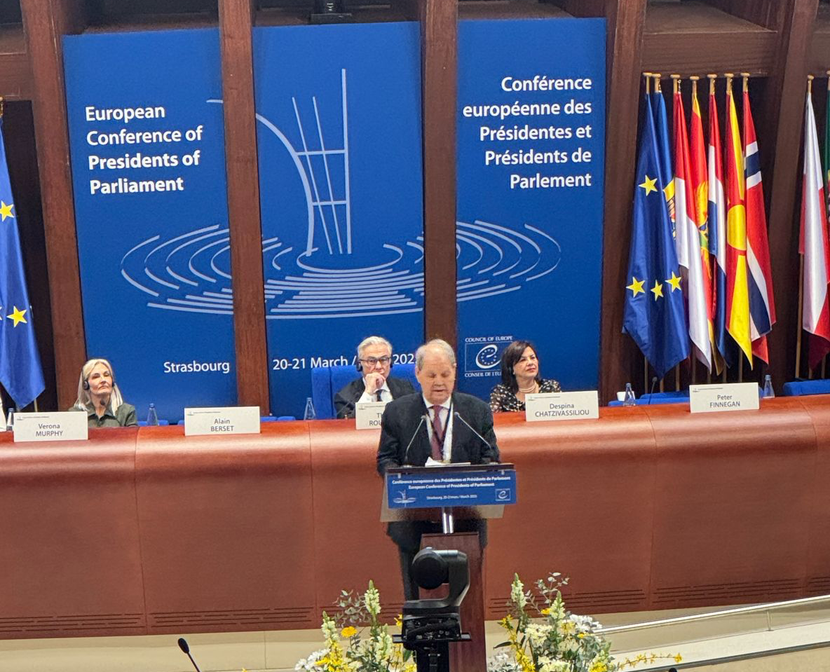 رام الله 22-3-2025 وفا- شارك رئيس المجلس الوطني روحي فتوح، في مؤتمر رؤساء البرلمانات الذي انعقد في مدينة ستراسبورغ في فرنسا، بحضور رؤساء برلمانات 72 دولة، لنقاش عدد من القضايا التي تهم الدول الأعضاء ومنها دولة فلسطين بصفتها عضوا مراقبا في الجمعية البرلمانية لمجس أوروبا.