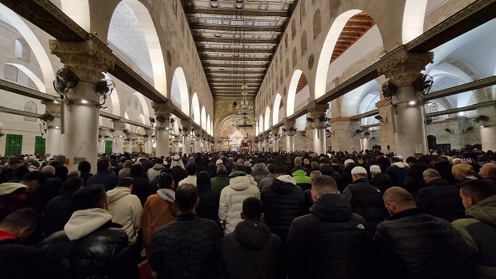 عشرات الآلاف يؤدون صلاتي العشاء والتراويح في المسجد الأقصى