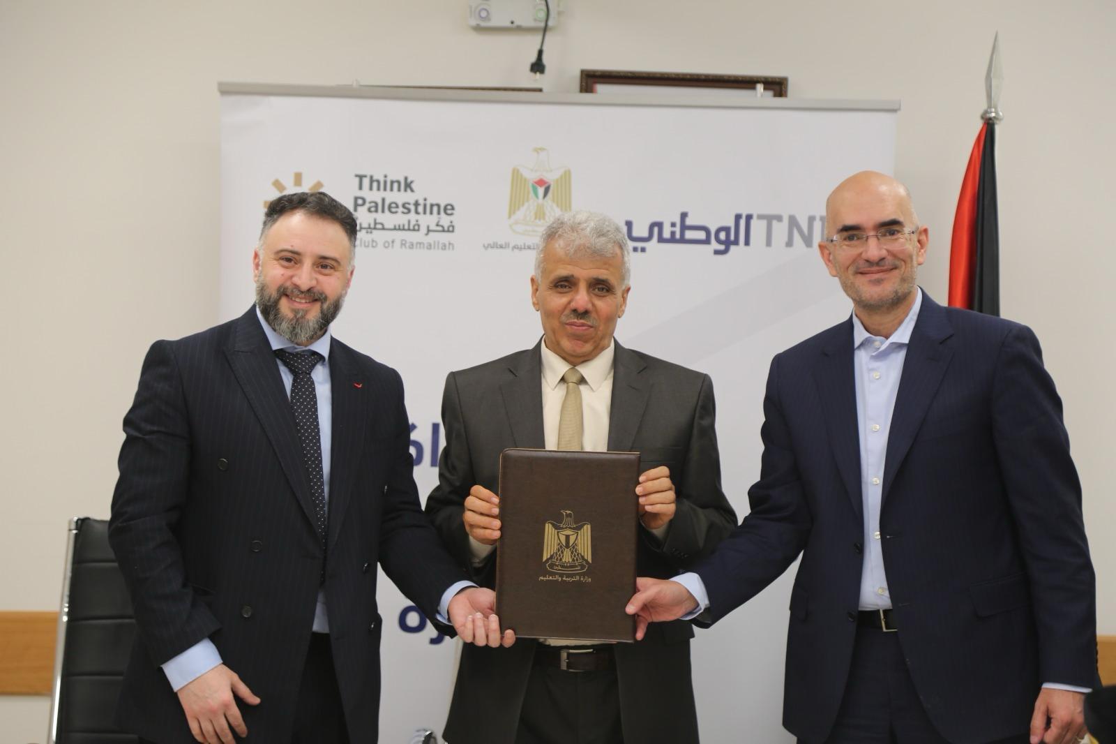 ووقّع الاتفاقية كل من وزير التربية والتعليم العالي أمجد برهم، والرئيس التنفيذي للبنك الوطني سلامة خليل، ورئيس مجلس إدارة جمعية فكر فلسطين رامي غانم، بحضور عدد من ممثلي المؤسسات الشريكة.
