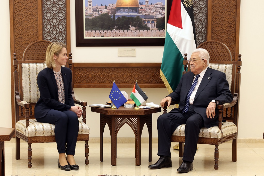 رام الله 24-3-2025 وفا- استقبل رئيس دولة فلسطين محمود عباس، مساء اليوم الاثنين، بمقر الرئاسة في مدينة رام الله، مفوضة السياسة الخارجية في الاتحاد الأوروبي كايا كالاس والوفد المرافق.