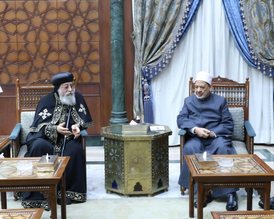 جاء ذلك خلال استقبال الإمام الأكبر أحمد الطيب، شيخ الأزهر الشريف، البابا تواضروس الثاني، بابا الإسكندرية وبطريرك الكرازة المرقسية، للتهنئة لمناسبة قرب حلول عيد الفطر المبارك.