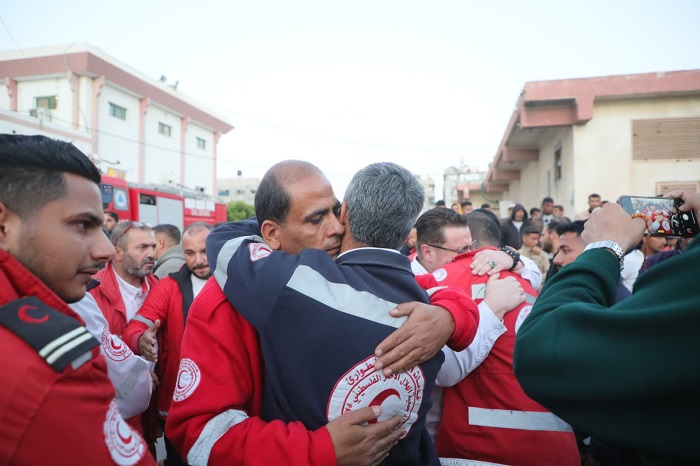 وأعلنت جمعية الهلال الأحمر الفلسطيني في وقت سابق، انتشال جثامين 14 شهيدا، من بينها ثمانية مسعفين من طواقمها، وخمسة من طواقم الإنقاذ، وموظف يتبع لوكالة الأمم المتحدة، الذين فُقدت آثارهم منذ ثمانية أيام بعد أن حاصرتهم قوات الاحتلال الإسرائيلي.