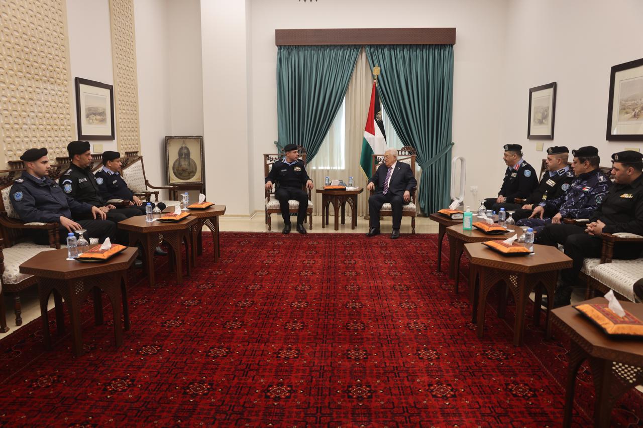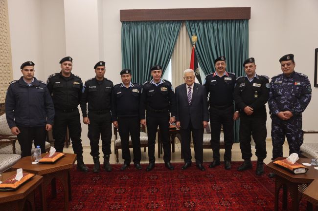 رام الله 31-3-2025 وفا- استقبل رئيس دولة فلسطين محمود عباس، اليوم الاثنين، بمقر الرئاسة في مدينة رام الله، مدير عام الشرطة الفلسطينية اللواء علام السقا وعددا من الضباط.