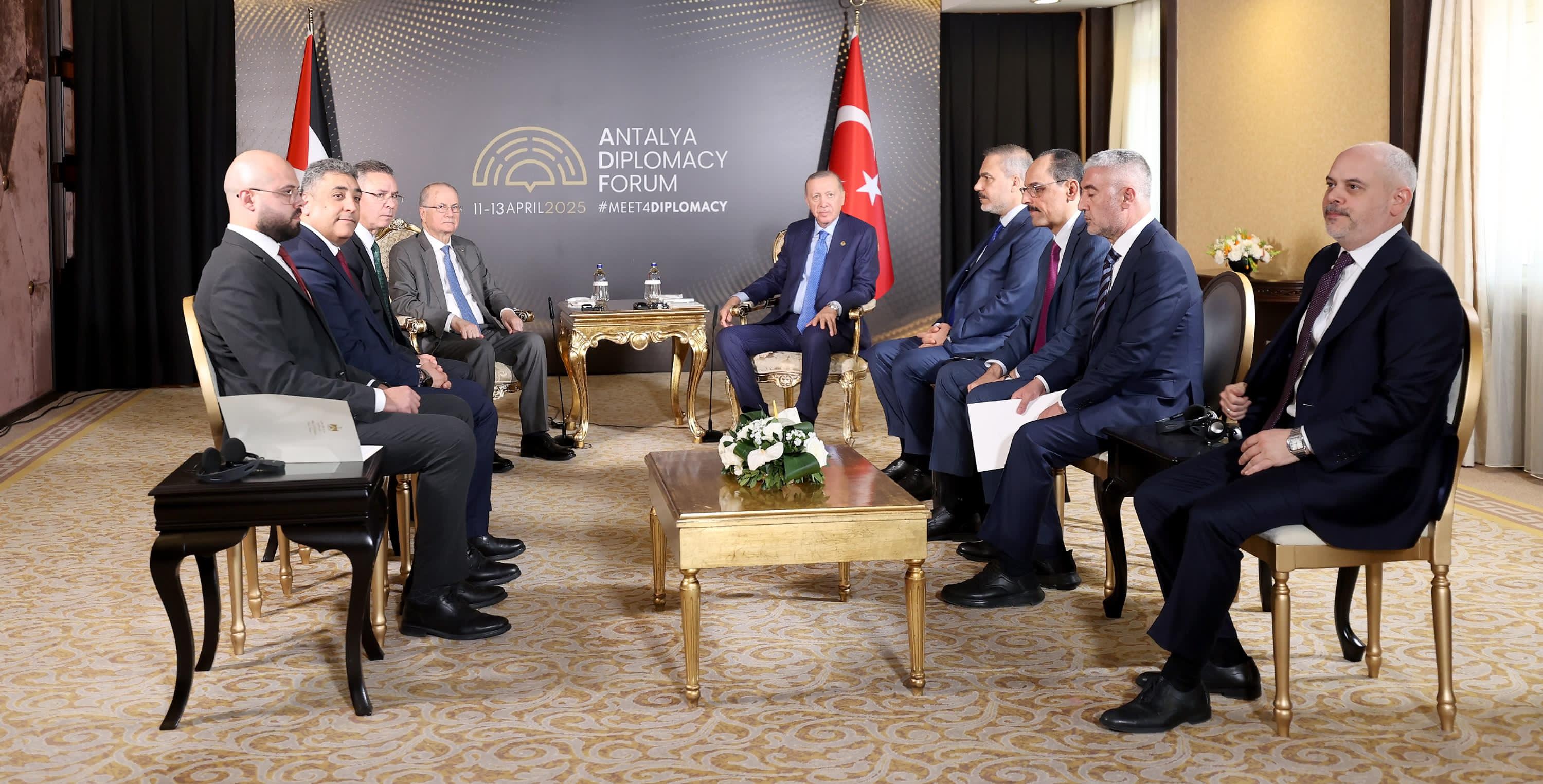 أنطاليا 12-4-2025 وفا- استقبل رئيس الجمهورية التركية رجب طيب أردوغان، اليوم السبت، رئيس الوزراء، وزير الخارجية محمد مصطفى، بحضور وزير الخارجية التركي هاكان فيدان، وسفير دولة فلسطين لدى تركيا فائد مصطفى، ومساعد وزير الخارجية السفير عمر عوض الله، على هامش مشاركته في منتدى أنطاليا للدبلوماسية بنسخته الرابعة.