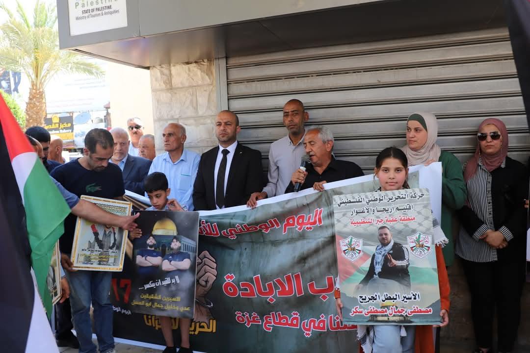 وأقيمت الوقفة وسط دوار مدينة أريحا، للمطالبة بحرية الأسرى، ووقف استمرار الإبادة الجماعية بحق أبناء شعبنا في قطاع غزة والضفة الغربية.