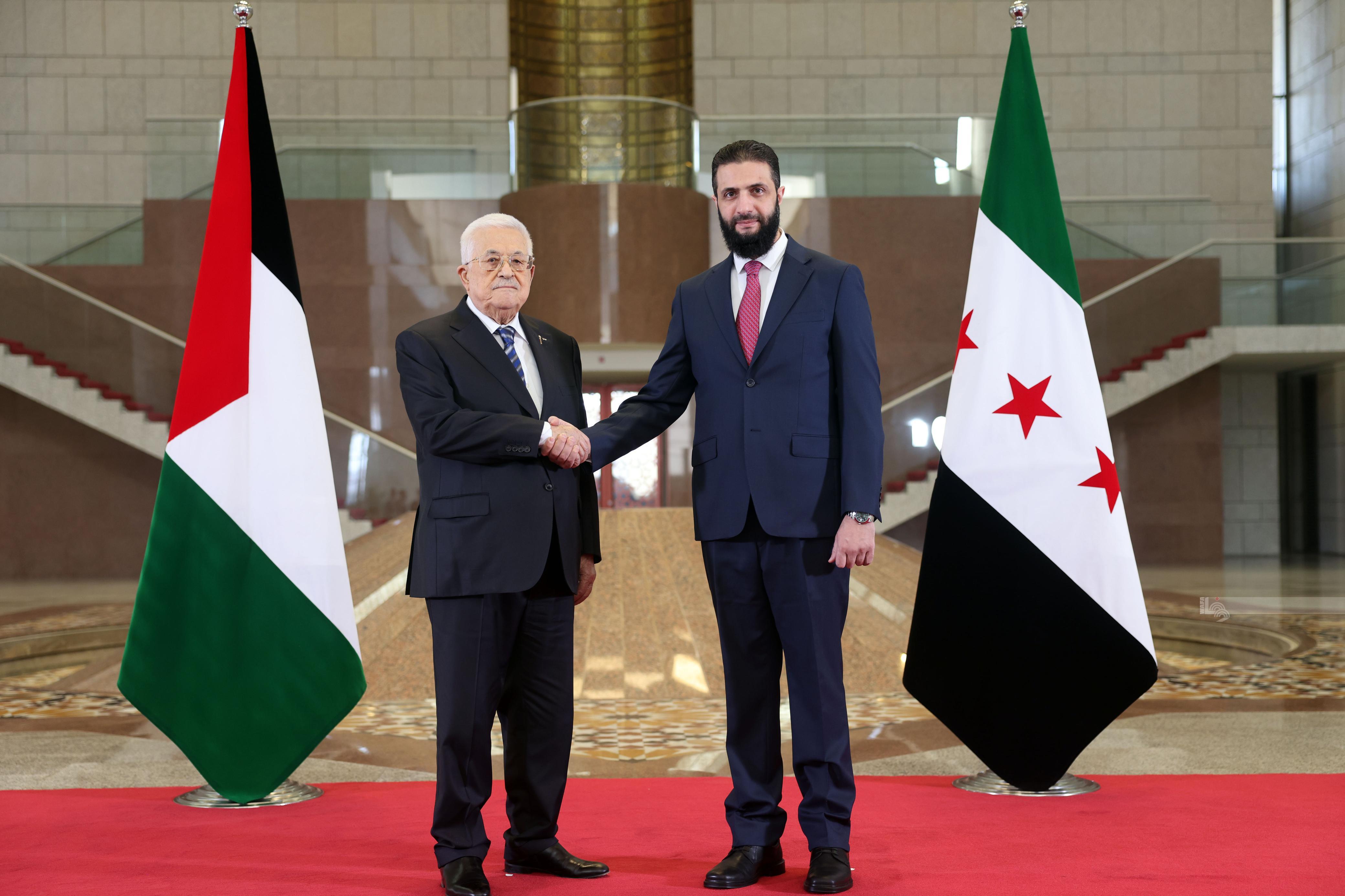 دمشق 18-4-2025 وفا- وصل رئيس دولة فلسطين محمود عباس، اليوم الجمعة، على رأس وفد رفيع المستوى، إلى الجمهورية العربية السورية في زيارة رسمية، للقاء أخيه الرئيس السوري أحمد الشرع، والقيادة السورية.