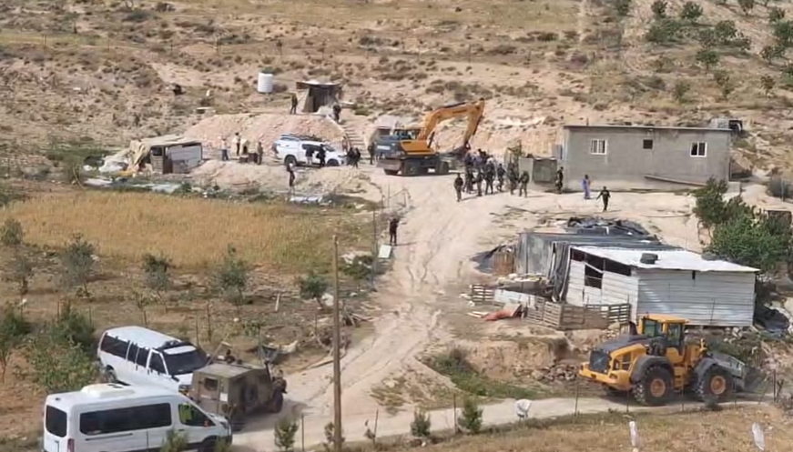الخليل 22-4-2025 وفا- هدمت قوات الاحتلال الإسرائيلي، اليوم الثلاثاء، منزلين وحظيرة أغنام ومغارة في قرية اللتواني بمسافر جنوب مدينة الخليل.
