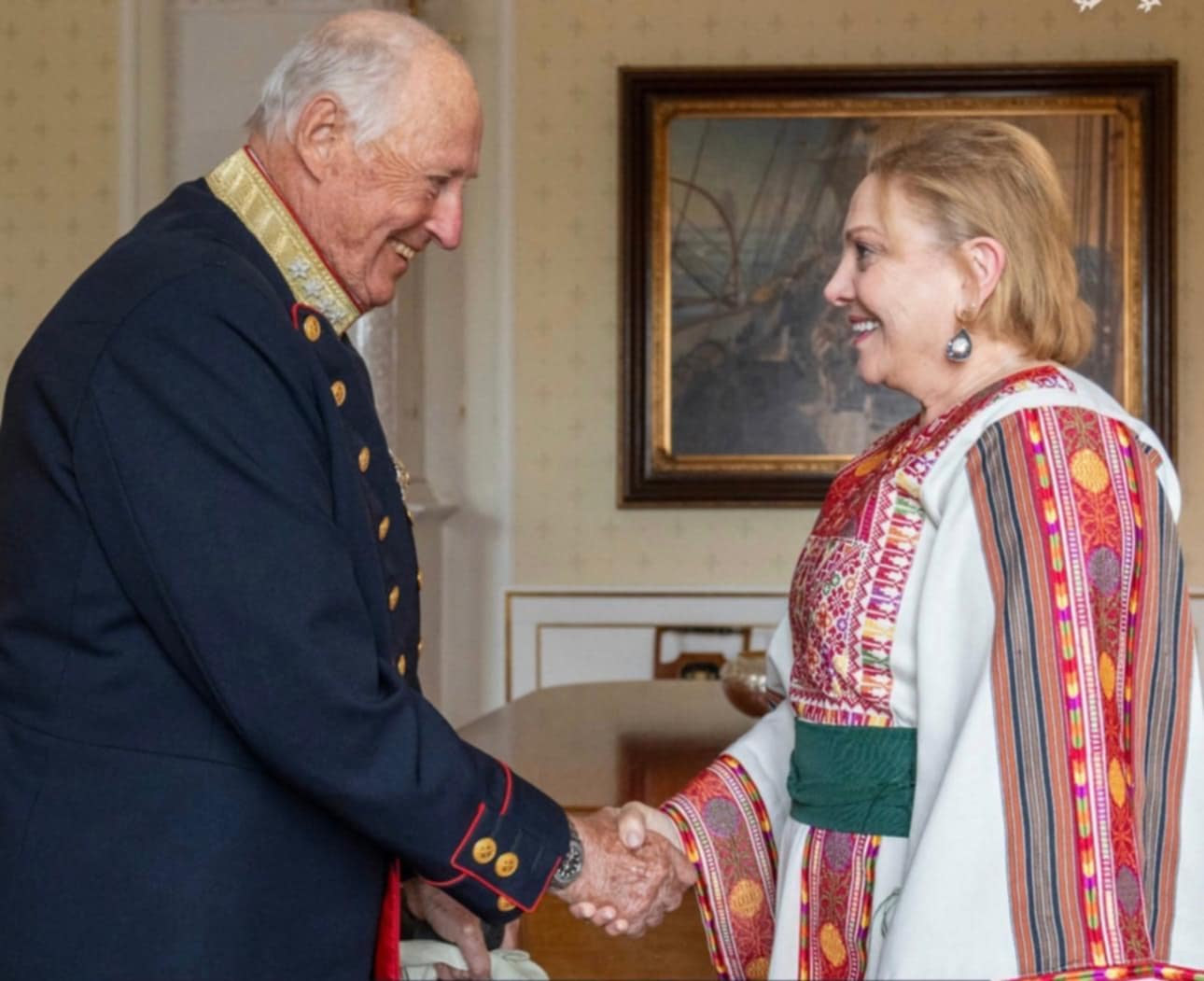 أوسلو 25-4-2025 وفا- قدمت سفيرة دولة فلسطين ماري أنطوانيت سيدين أوراق اعتمادها للملك النرويجي هارالد الخامس.