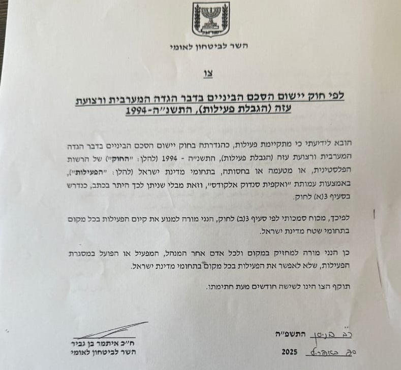 وأضافت أن إقدام بن غفير، المعروف بتطرفه وعنصريته، على هذه الجريمة السياسية يؤكد مجددا أن الاحتلال يسير نحو تصعيد غير مسبوق يستهدف خنق الحياة الفلسطينية في القدس، وضرب مقومات صمود المقدسيين، معتبرة أن هذا القرار هو خطوة عدوانية تأتي ضمن سياسة الاحتلال الممنهجة لتقويض الوجود الفلسطيني في العاصمة المحتلة.