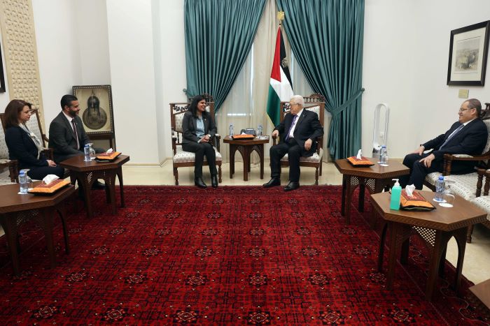 رام الله 29-4-2025 وفا- استقبل رئيس دولة فلسطين محمود عباس، اليوم الثلاثاء، سفيرة الهند لدى فلسطين رينو ياداف التي جاءت مودعة لمناسبة انتهاء عملها.