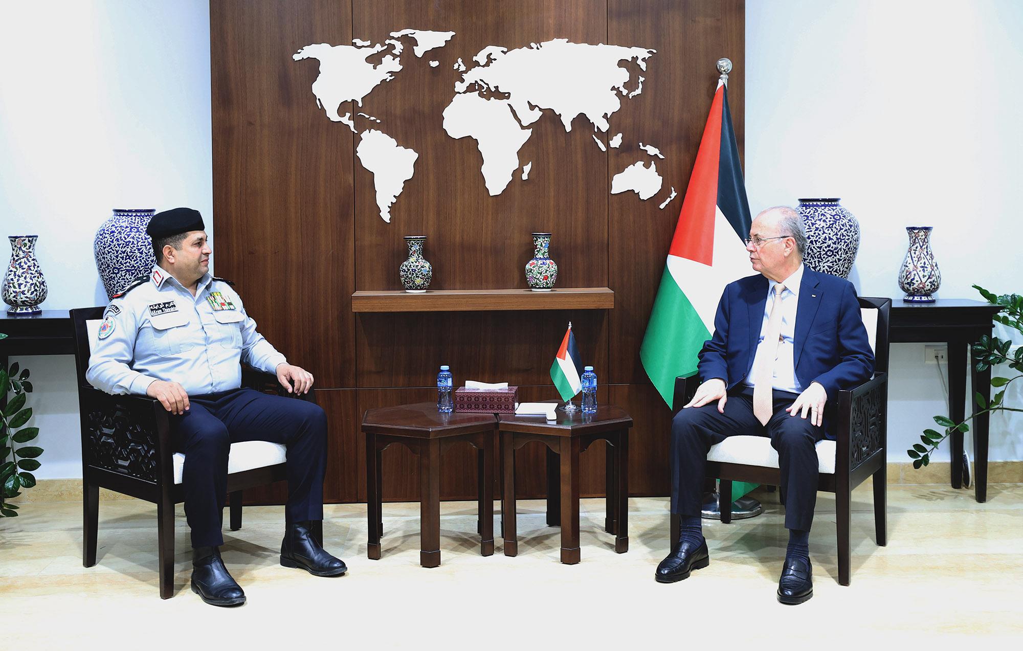 رام الله 10-5-2025 وفا- التقى رئيس الوزراء محمد مصطفى، اليوم السبت في مكتبه برام الله، مدير عام الدفاع المدني اللواء ركن أكرم ثوابتة، بحضور الأمين العام لمجلس الوزراء دواس دواس، حيث اطلع على سير العمل في قطاع الحماية المدنية.