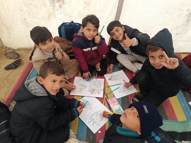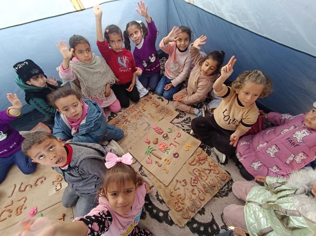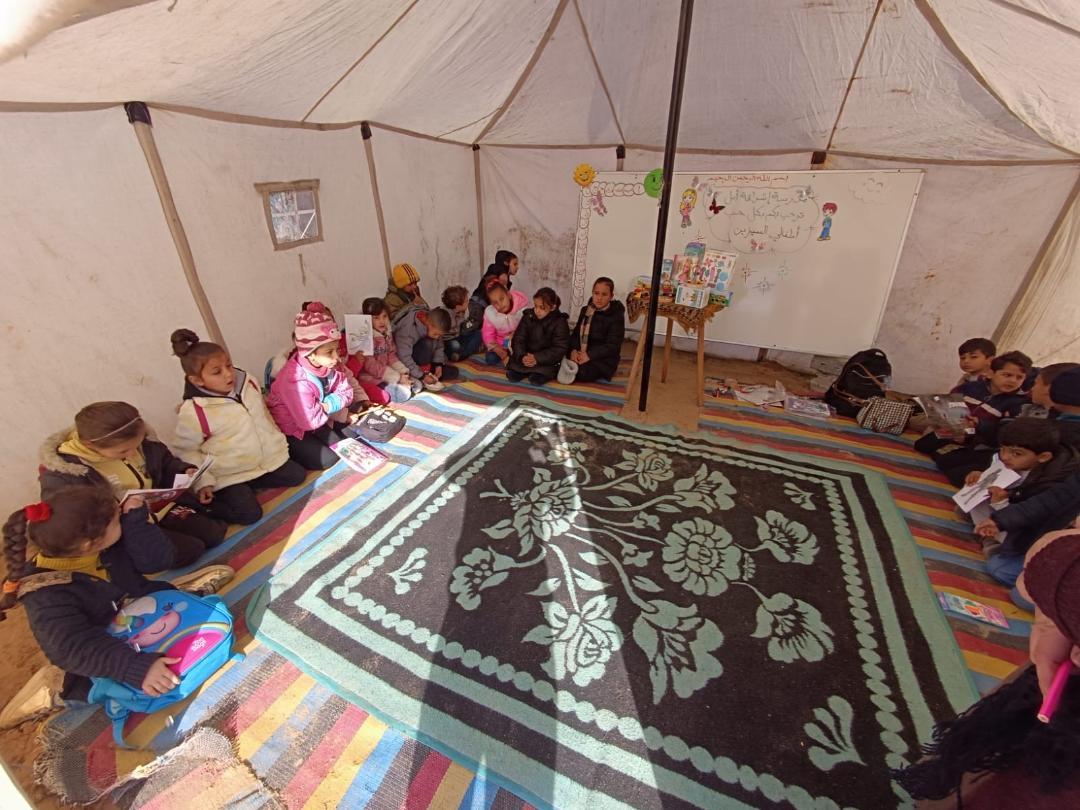 وسط هذا الركام، وبين الأزقة الترابية التي كانت يومًا شوارع معبّدة، أُقيمت مدرسة "إشراقة أمل" داخل خيام بلاستيكية، لا تقي من حر الصيف ولا برد الشتاء. الخيام تهترئ يومًا بعد يوم، لكنها تحتضن حياة: حياة التعليم، وحياة من يرفضون الاستسلام.
