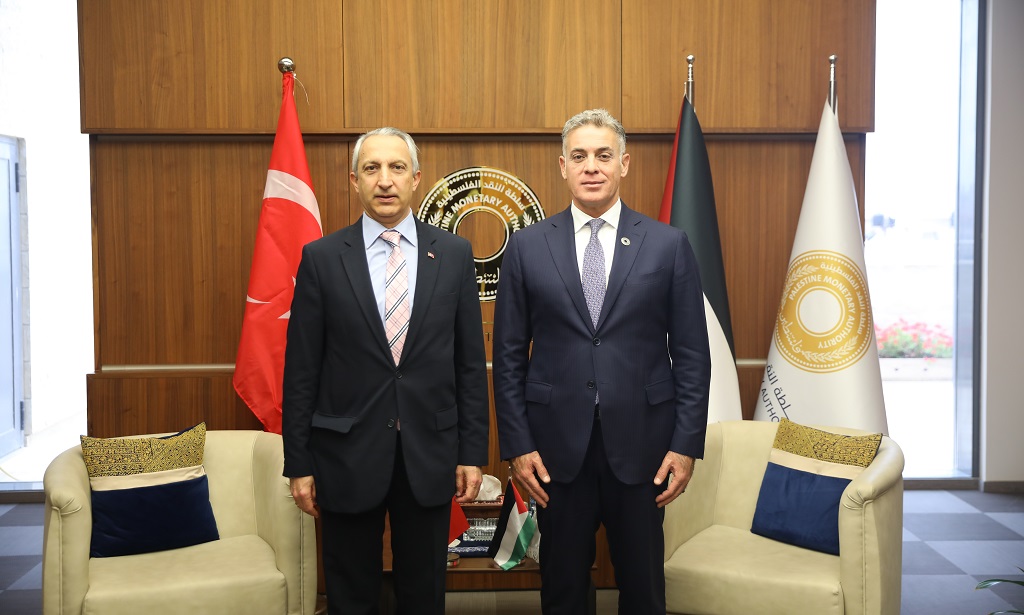 رام الله 13-5-2025 وفا- بحث محافظ سلطة النقد يحيى شنّار، في مكتبه بمدينة رام الله، مع سفير الجمهورية التركية لدى دولة فلسطين، إسماعيل تشوبان أوغلو، سبل تعزيز العلاقات الثنائية في المجالين المالي والمصرفي.