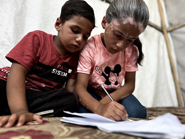 وتضيف: "هذه البقع جعلت زملائي في المخيم يسخرون مني، فأصبحت أشعر بالحزن وأبكي كثيرا".