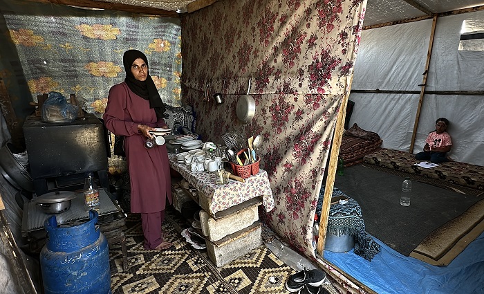 وتابع أنها أصبحت تقضي وقتها يوميا بين الحصول على مياه أو طعام تعجز العائلة عن توفيره جراء الوضع الاقتصادي الصعب الذي تمر به بسبب تواصل الإبادة الإسرائيلية.