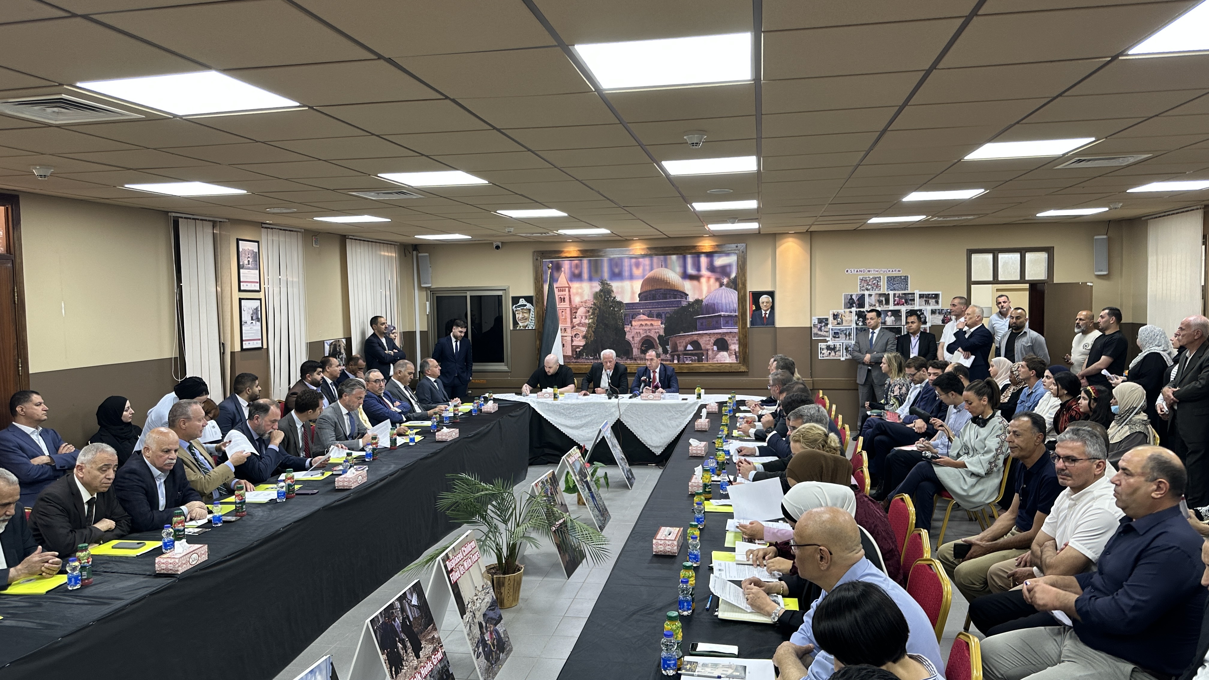 وتخلل اللقاء مداخلات من ممثلي المؤسسات الوطنية في المحافظة، من بينها بلدية طولكرم، والغرفة التجارية، وجمعية الهلال الأحمر الفلسطيني، واللجان الشعبية لخدمات مخيمي طولكرم ونور شمس، حيث عرضوا حجم الدمار الهائل الذي طال البنية التحتية والمرافق العامة والمنازل والتهجير القسري لآلاف المواطنين، إضافة إلى المعاناة الاقتصادية المتصاعدة بسبب الحصار وإغلاق الطرق والمعابر، وما تبع ذلك من توقف شبه كامل للحياة التجارية والاقتصادية في المدينة.