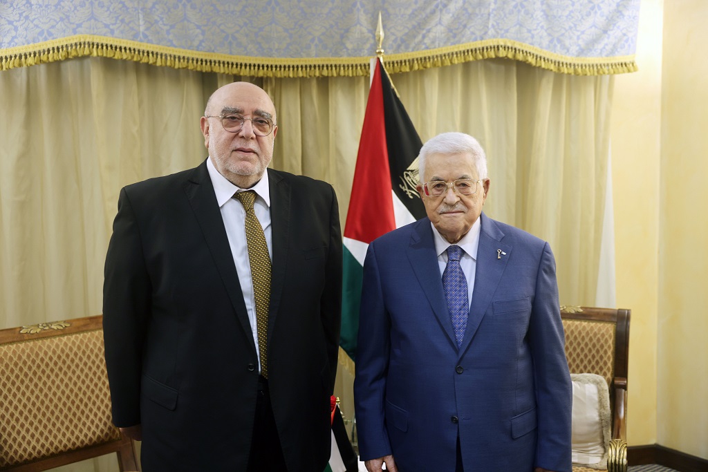 بيروت 23-5-2025 وفا- استقبل رئيس دولة فلسطين محمود عباس، اليوم الجمعة، أمين الهيئة القيادية لحركة الناصريين المستقلين (المرابطون) مصطفى حمدان.