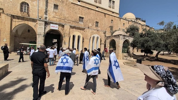 وأفادت مصادر محلية، بأن نحو 1500 مستعمر اقتحموا المسجد الأقصى، وأدوا طقوسا تلمودية واستفزازية في باحاته، فيما قامت مستعمرة برفع علم الاحتلال والرقص فيه عند المنطقة الشرقية من المسجد، وذلك تزامنا مع نشر شرطة الاحتلال حواجز حديدية في محيط باب العامود والبلدة القديمة للتضييق على المقدسيين وسط إجراءات عسكرية مشددة.