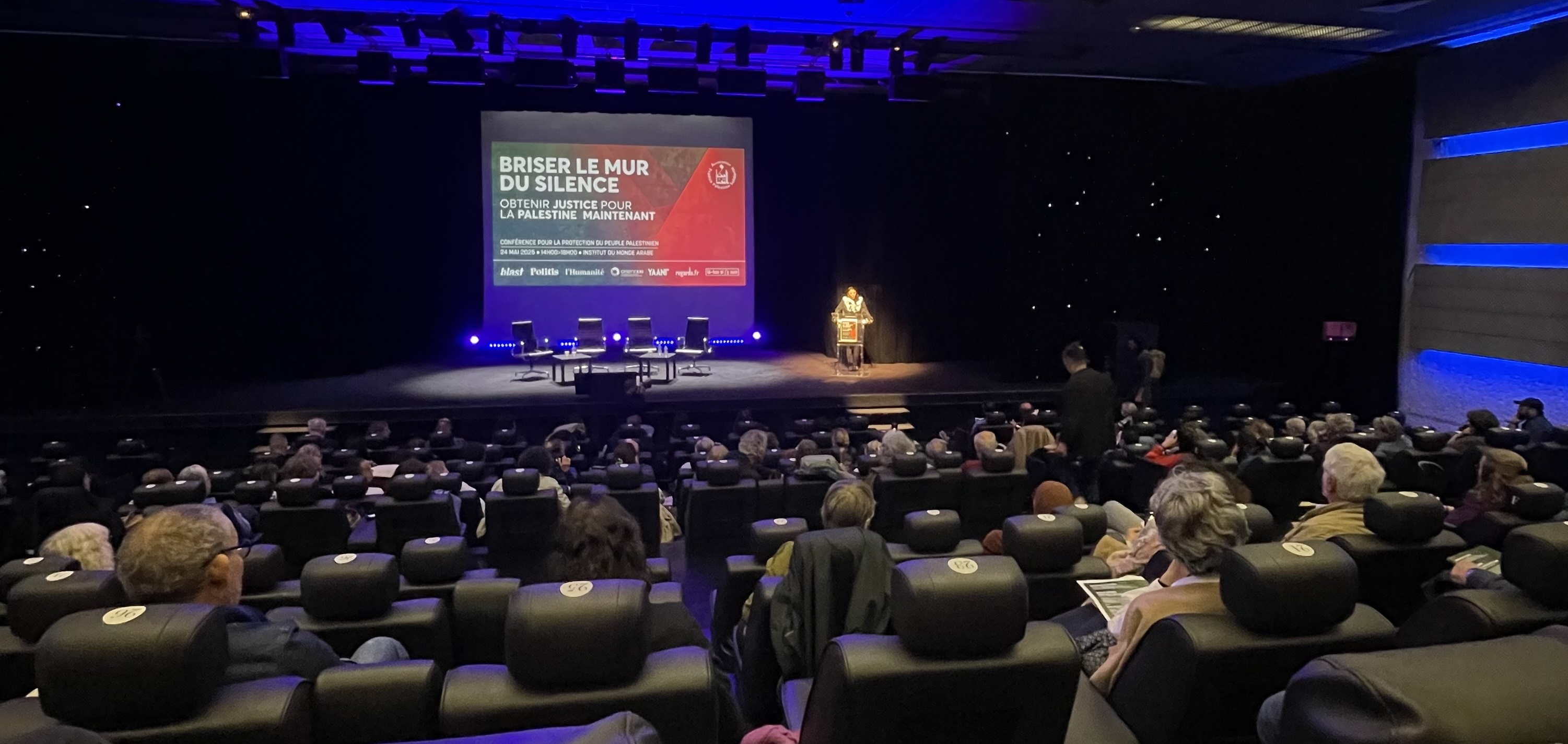 باريس 26-5-2025 وفا- أحيت جمعية التضامن الفرنسية الفلسطينية الذكرى الـ 77 للنكبة، في مدرج معهد العالم العربي بالعاصمة باريس، بحضور حشد كبير من المتضامنين مع الشعب الفلسطيني بينهم نواب وأعضاء مجلس شيوخ وجمعيات تضامنية.