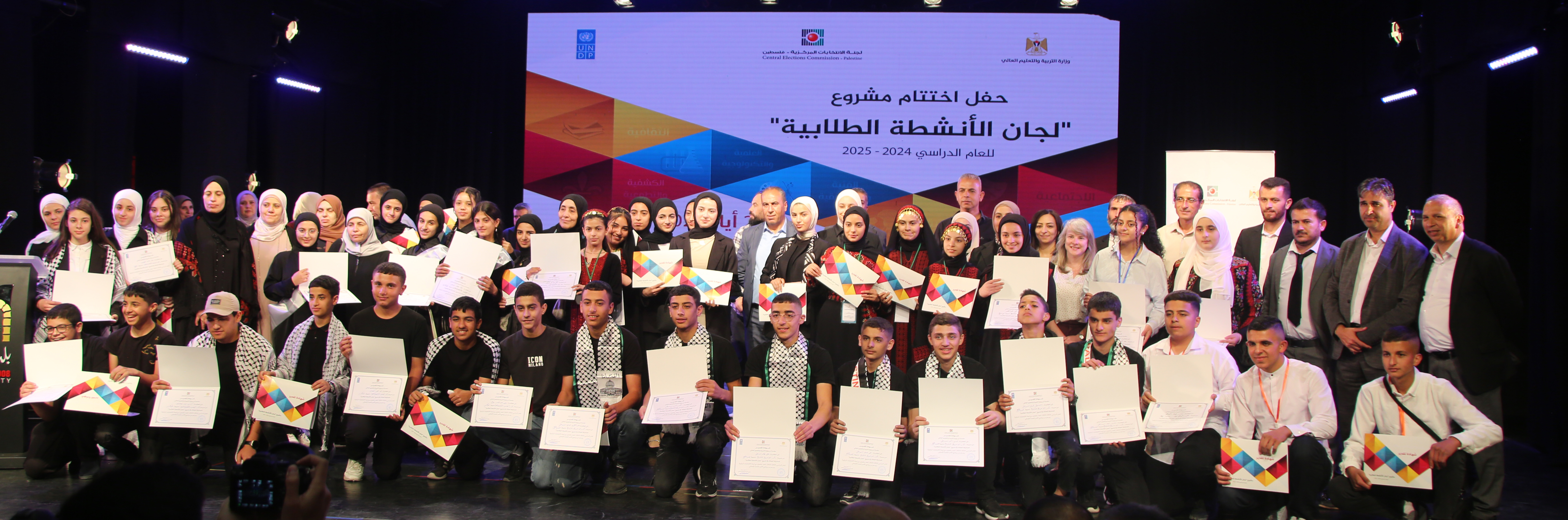 وأُقيمت فعالية الاختتام في مبنى بلدية رام الله، بحضور الوكيل المساعد للشؤون الطلابية في وزارة التربية صادق الخضور، ومدير دائرة العلاقات العامة في لجنة الانتخابات المركزية فريد طعم الله، ومدير برامج الحوكمة الديمقراطية وخدمات الجودة في برنامج الأمم المتحدة الإنمائي نادر عطا، ومدير عام النشاطات الطلابية حامد أبو مخو، إلى جانب عدد من كوادر الوزارة والمشاركين في المشروع.