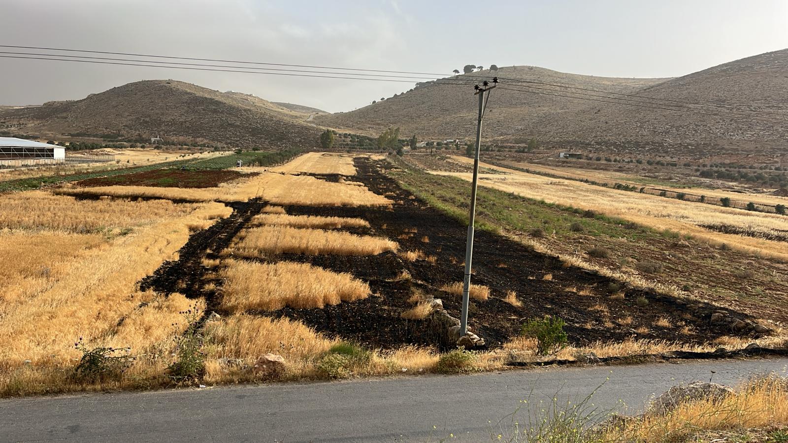 رام الله 27-5-2025 وفا- أحرق مستعمرون، اليوم الثلاثاء، أراضي بين قريتي المغير وأبو فلاح شمال شرق رام الله.