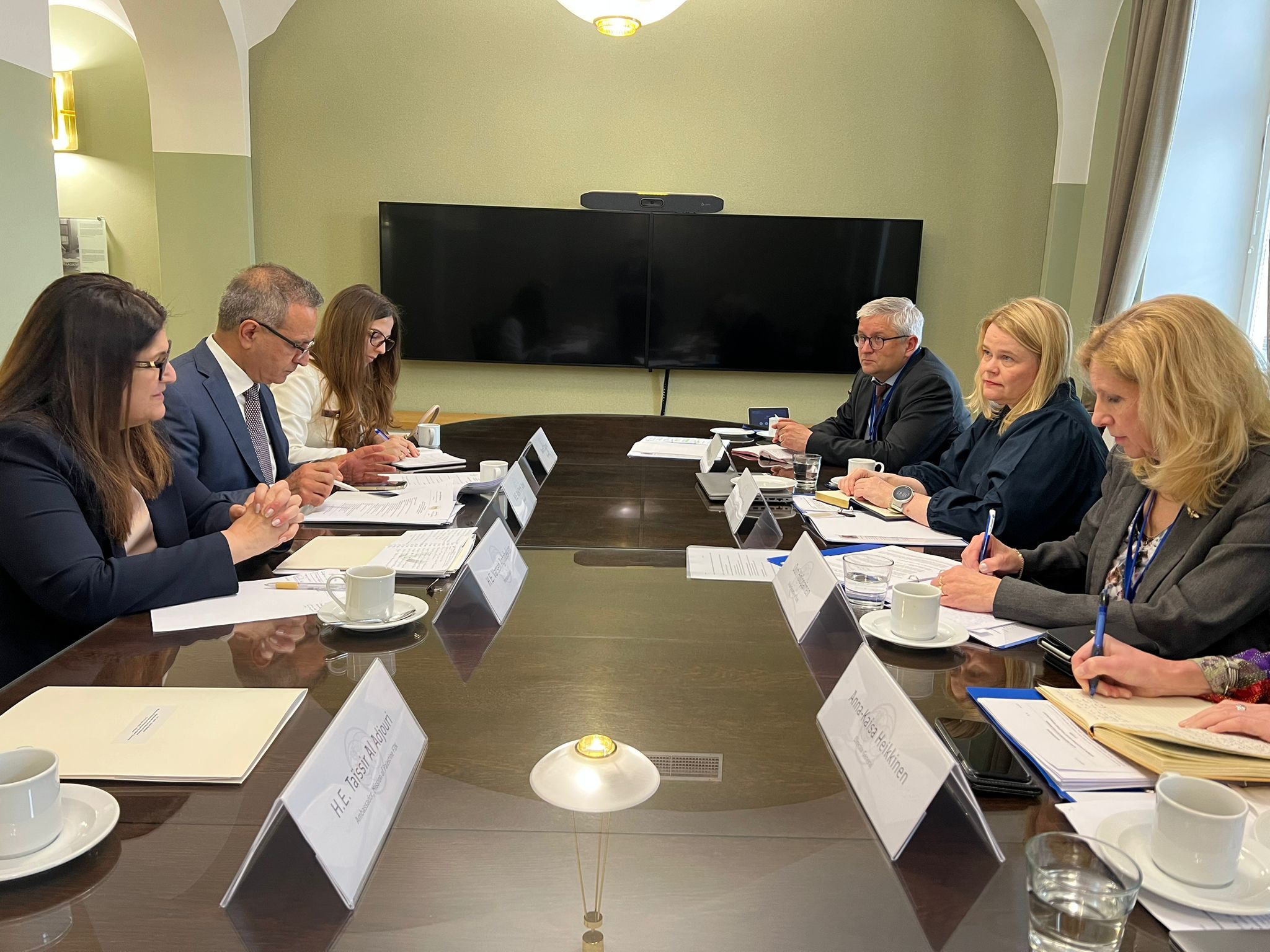 هلسنكي 11-6-2025 وفا- عقدت وزيرة الدولة لشؤون وزارة الخارجية والمغتربين فارسين شاهين، جلسة مشاورات سياسية في مقر وزارة الخارجية الفنلندية مع سكرتير الدولة الدائم يوكا سالوفارا، ووكيل الدولة للشؤون الخارجية والسياسات الأمنية اوتي هولوباينين.