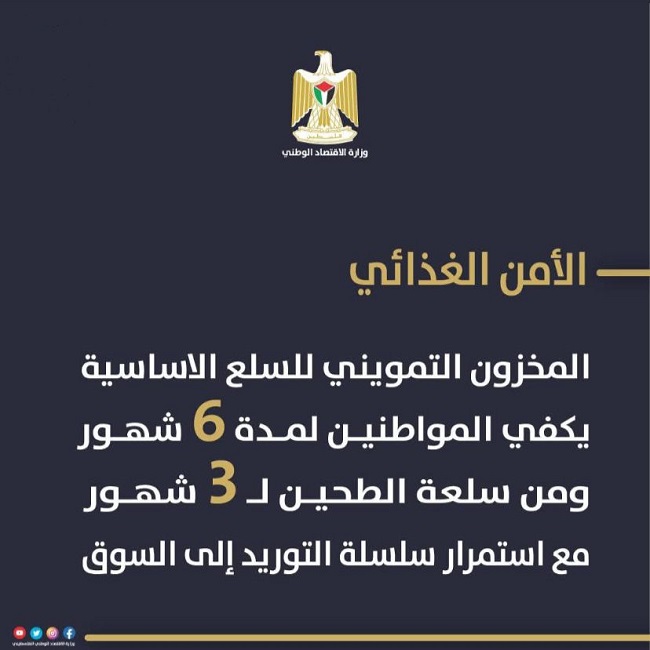 وأشارت الوزارة إلى أنها تعمل بشكل مكثف على التنسيق مع التجار والموردين، وتتابع الحركة التجارية الداخلية والخارجية لضمان استقرار السوق، رغم التحديات الميدانية التي تفرضها سلطات الاحتلال.