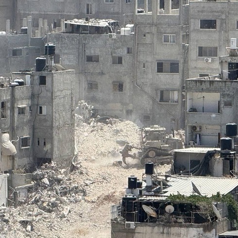 وأفادت مراسلتنا بأن عمليات الهدم تجري بوتيرة متسارعة، مستخدمة ست جرافات من النوع الثقيل، استهدفت المباني السكنية في حارة المنشية ومحيطها، حيث جرت تسويتها بالأرض وفتح شوارع واسعة مكانها، وذلك في إطار عدوان متواصل منذ أسابيع، أسفر حتى الآن عن هدم أكثر من 30 مبنى سكنياً في المخيم.