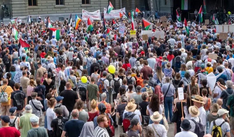 برن 22-6-2025 وفا– في مشهد غير مسبوق منذ اندلاع الحرب الإسرائيلية على قطاع غزة، خرج ما بين 10,000 إلى 20,000 متظاهر يوم أمس في العاصمة السويسرية برن، في تظاهرة وطنية ضخمة دعا إليها ائتلاف واسع من منظمات المجتمع المدني، مطالبين بوقف فوري ودائم ومراقب لإطلاق النار في قطاع غزة، وبتغيير جذري في موقف الحكومة الفدرالية السويسرية تجاه المجازر المستمرة.