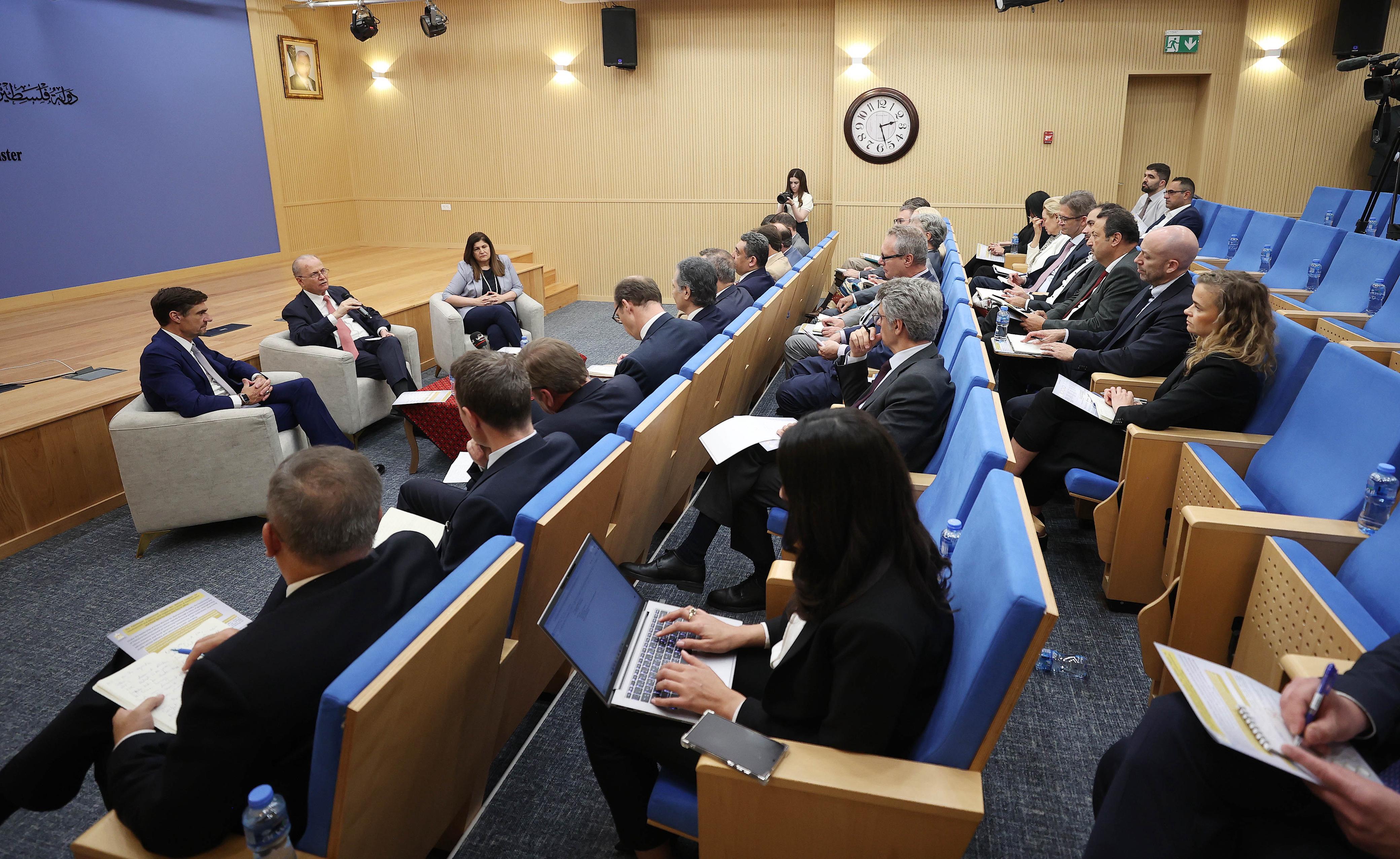 من جانبه، أكد ممثل الاتحاد الأوروبي لدى فلسطين ألكسندر شتوتسمان الدعم المستمر لمؤسسات دولة فلسطين والشعب الفلسطيني، والتزام الاتحاد الأوروبي بمبادئ القانون الدولي والإنساني مؤكدا على بذل الجهود لتثبيت وقف إطلاق نار مستدام في قطاع غزة واستئناف إدخال المساعدات الإغاثية والإنسانية، واستعادة الخدمات الأساسية وصولا إلى إعادة الاعمار.