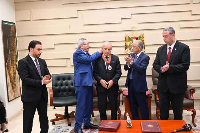 وفي ختام الزيارة سلم سفير فلسطين في القاهرة دياب اللوح، وعضو اللجنة التنفيذية لمنظمة التحرير رمزي رباح، الأمين العام لاتحاد المحامين العرب النقيب المكاوي بنعيسى، نجمة الاستحقاق من وسام دولة فلسطين، تقديرا لدوره المتميز في إسناد حقوق الشعب الفلسطيني وقضيته العادلة، وتثمينا لجهوده في حشد التضامن القومي مع شعب فلسطين لنيل حريته واستقلاله.