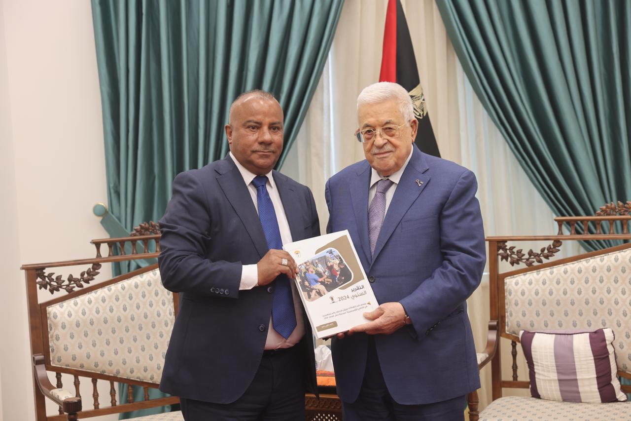 رام الله 3-6-2025 وفا- تسلم رئيس دولة فلسطين محمود عباس، اليوم الثلاثاء، التقرير السنوي لهيئة مقاومة الجدار والاستيطان 2024.