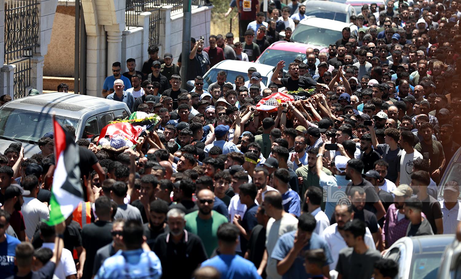 رام الله 13-7-2025 وفا– شيّعت جماهير غفيرة من أبناء شعبنا، اليوم الأحد، جثماني الشهيدين محمد الشلبي، وسيف الدين كامل مصلط من بلدة المزرعة الشرقية شرق رام الله، إلى مثواهما الأخير.